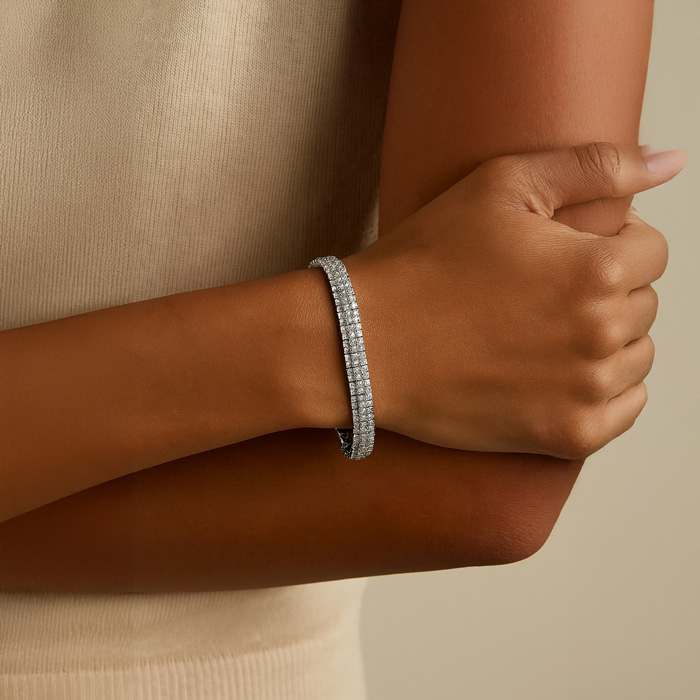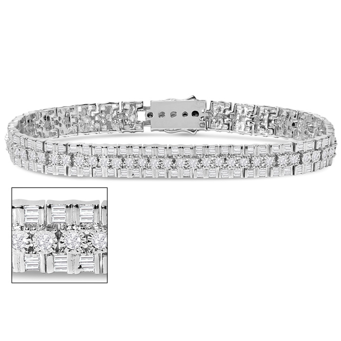 3 Carat Round and Baguette Thick Diamond Bracelet In Sterling Silver, 7 Inches