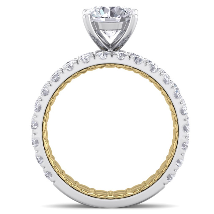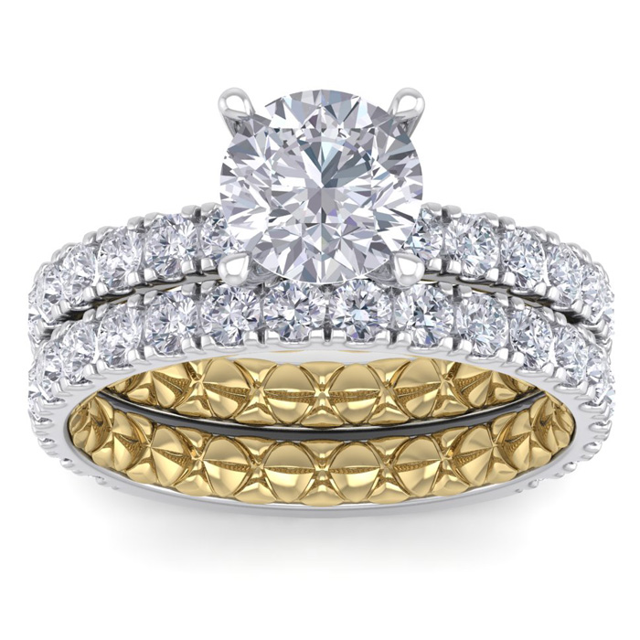 3 Carat Natural Round Shape Diamond Bridal Set In Quilted 14 Karat White and Yellow Gold