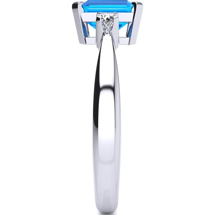 "This elegant classy blue topaz and diamond ring has such a simplistic beauty. The bright blue stone is so stunning; and makes the 14K white gold shine. This is a perfect sophisticated piece to add to your collection of jewelry.