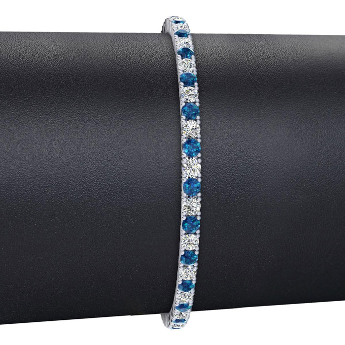 4 1/2 Carat Blue And White Diamond Mens Tennis Bracelet In 14 Karat White Gold, 8 Inches