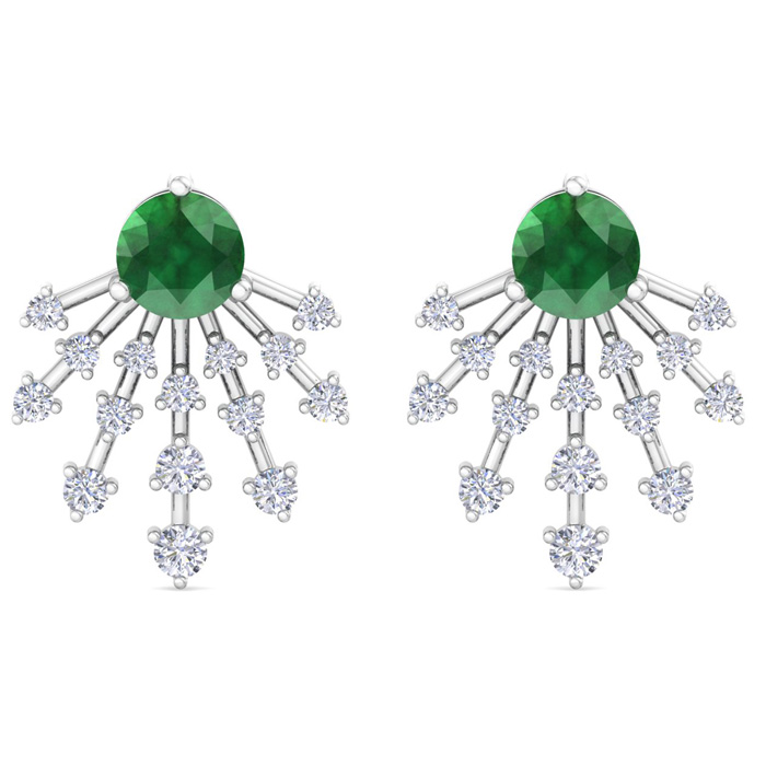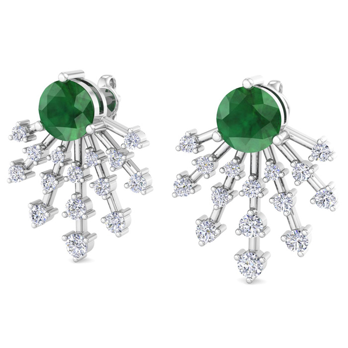 4 1/2 Carat Round Shape Emerald and Lab Grown Diamond Spray Drop Earrings In 14 Karat White Gold
