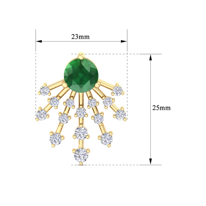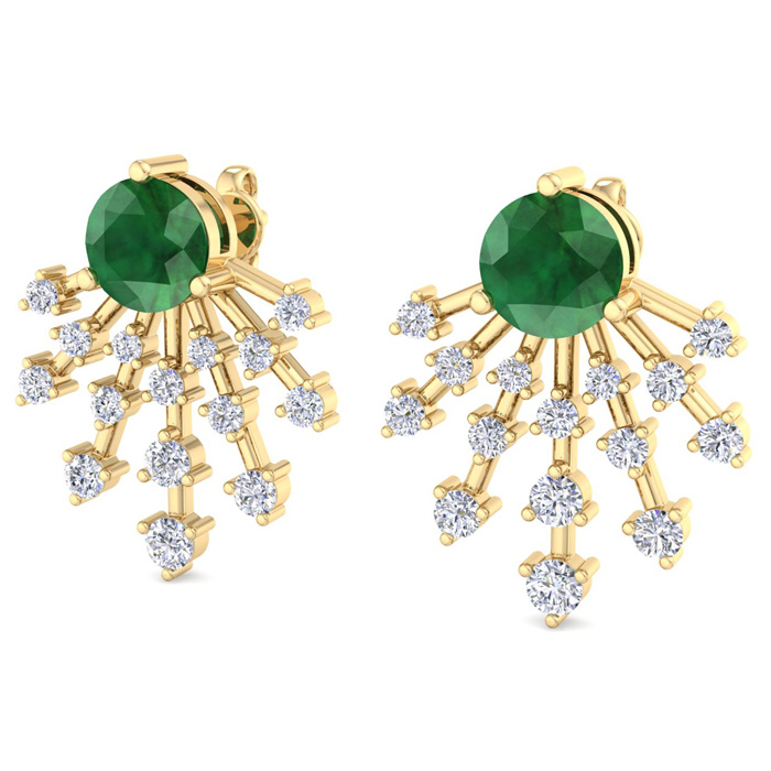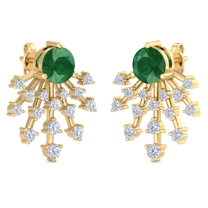 4 1/2 Carat Round Shape Emerald and Lab Grown Diamond Spray Drop Earrings In 14 Karat Yellow Gold