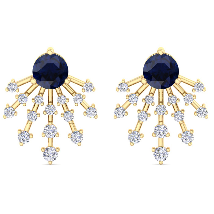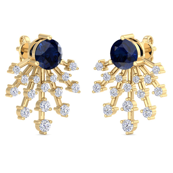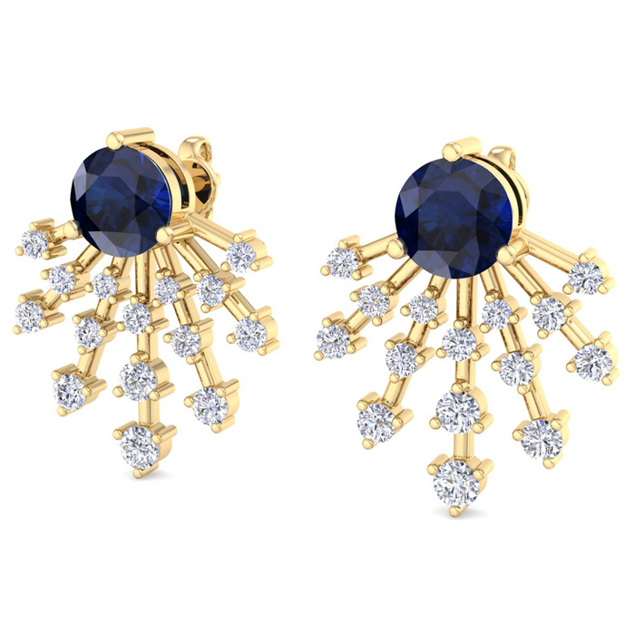 4 1/2 Carat Round Shape Sapphire and Lab Grown Diamond Spray Drop Earrings In 14 Karat Yellow Gold