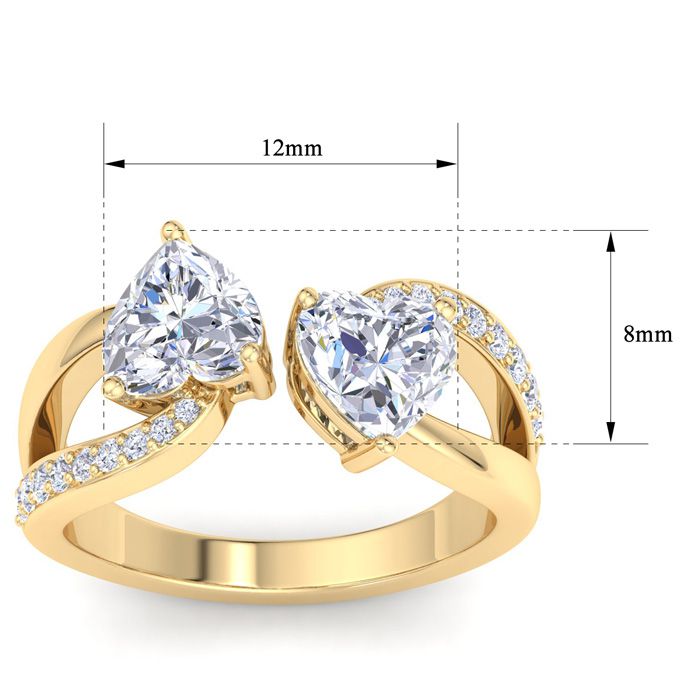 4 1/4 Carat Lab Grown Diamond Two Stone Engagement Ring In 14 Karat Yellow Gold, Heart