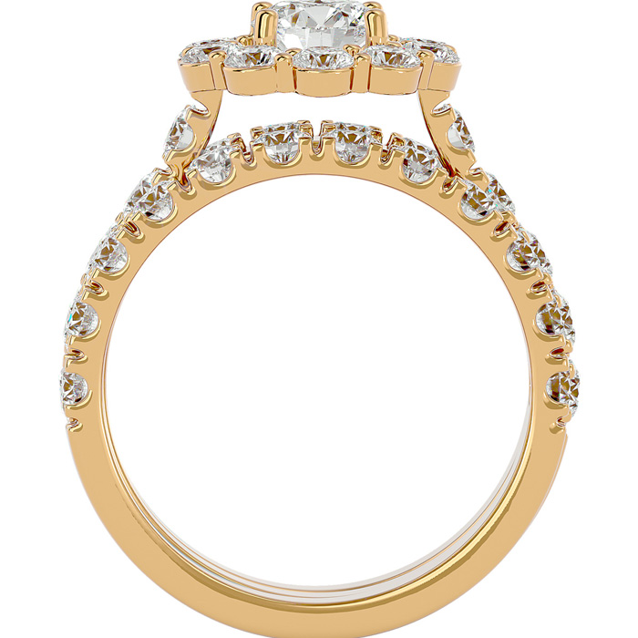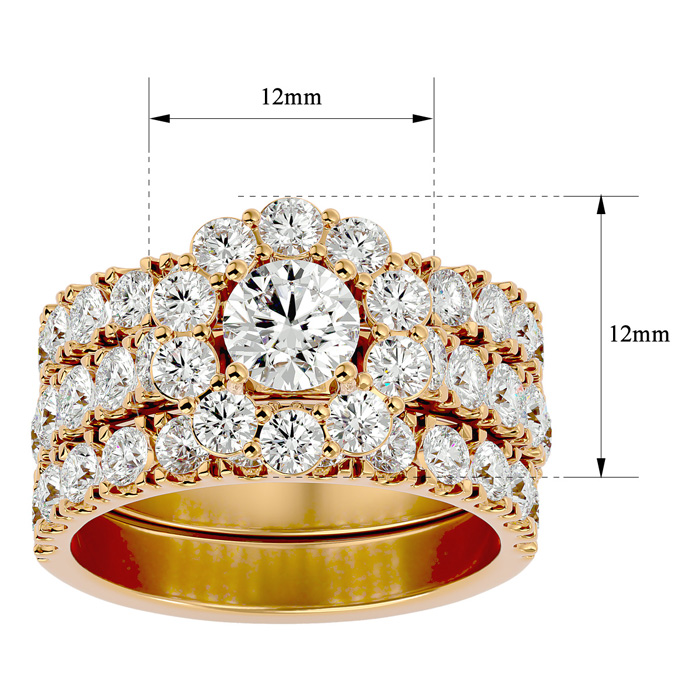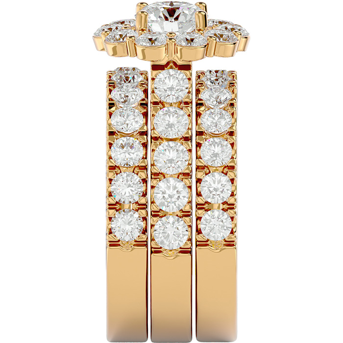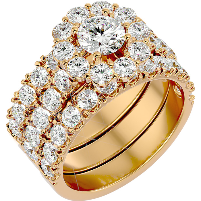 4 1/4 Carat Round Shape Diamond Bridal Set With Two Bands In 14 Karat Yellow Gold