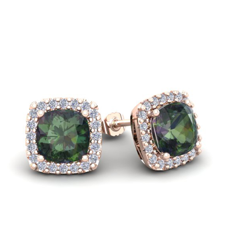 • The square shape cut for mystic topaz earrings is surely a bold and classic look. It is perfect to show off the beautiful shades of the rainbow, a virtual kaleidoscope of colors. The square shape cut can look great when turned one-quarter-turn, so that the corners point up and down/right and left.
