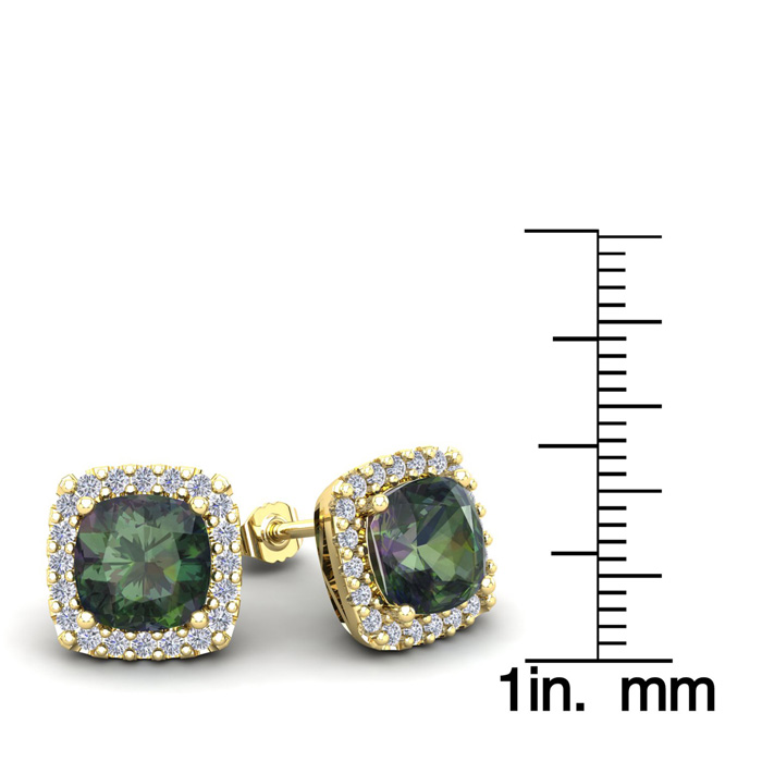 4 3/4 Carat Cushion Cut Mystic Topaz and Halo Diamond Stud Earrings In 14 Karat Yellow Gold