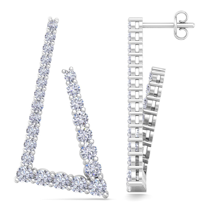 4 3/4 Carat Lab Grown Diamond Line Modern Earrings In 14 Karat White Gold, 1 1/2 Inches