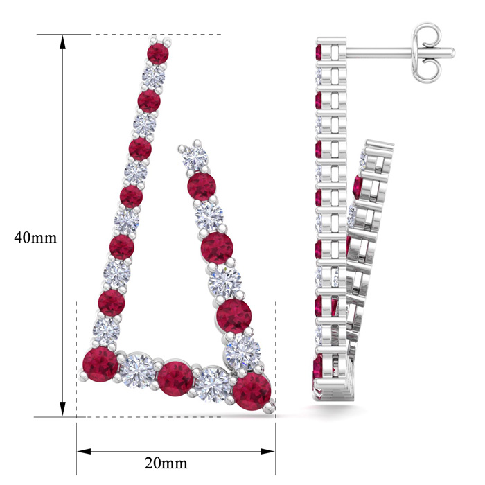 4 3/4 Carat Ruby and Lab Grown Diamond Line Modern Earrings In 14 Karat White Gold, 1 1/2 Inches