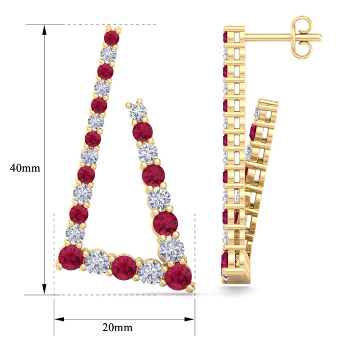 4 3/4 Carat Ruby and Lab Grown Diamond Line Modern Earrings In 14 Karat Yellow Gold, 1 1/2 Inches