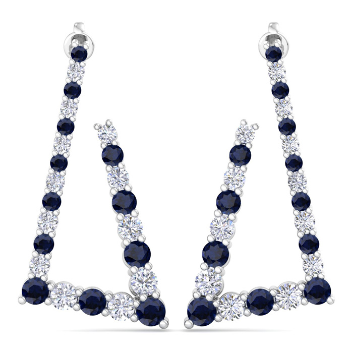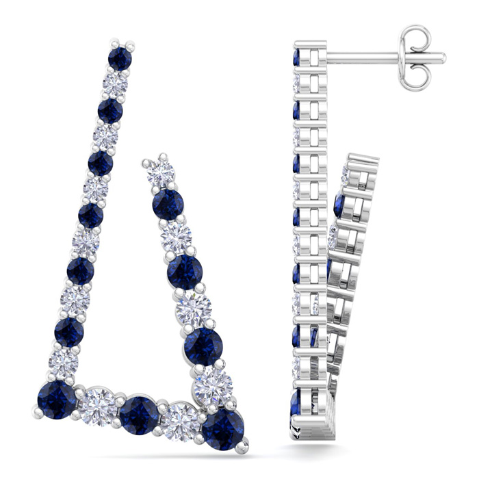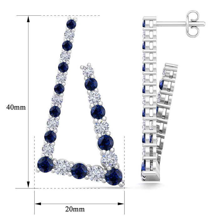 4 3/4 Carat Sapphire and Lab Grown Diamond Line Modern Earrings In 14 Karat White Gold, 1 1/2 Inches
