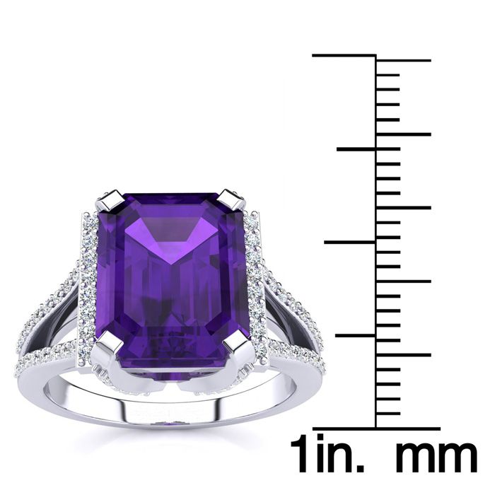 4 Carat Amethyst and Halo Diamond Ring In 14 Karat White Gold