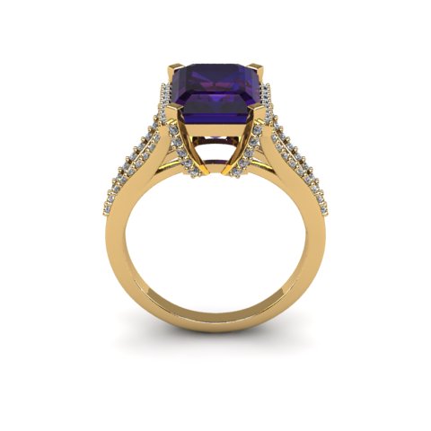 4 Carat Amethyst and Halo Diamond Ring In 14 Karat Yellow Gold