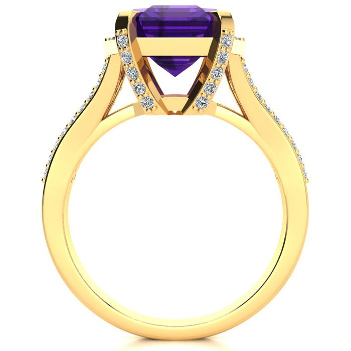4 Carat Amethyst and Halo Diamond Ring In 14 Karat Yellow Gold
