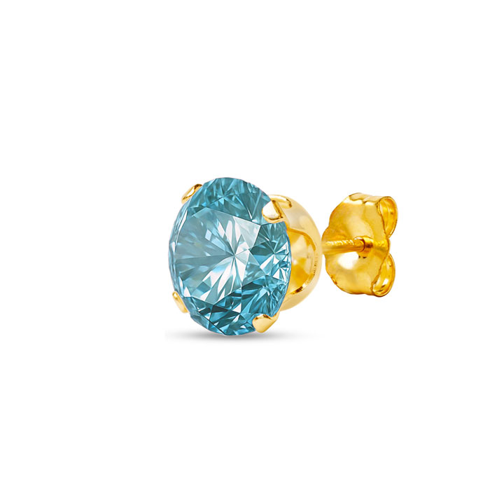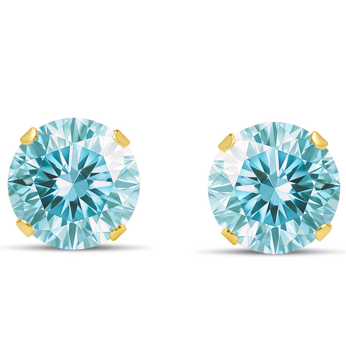 4 Carat Blue Moissanite Stud Earrings In Yellow Gold
