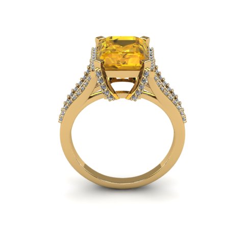 4 Carat Citrine and Halo Diamond Ring In 14 Karat Yellow Gold