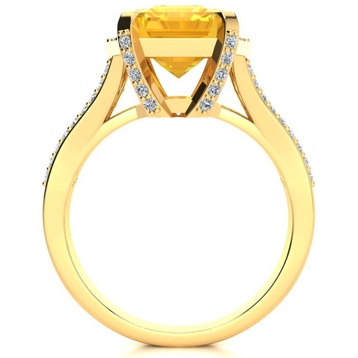 4 Carat Citrine and Halo Diamond Ring In 14 Karat Yellow Gold