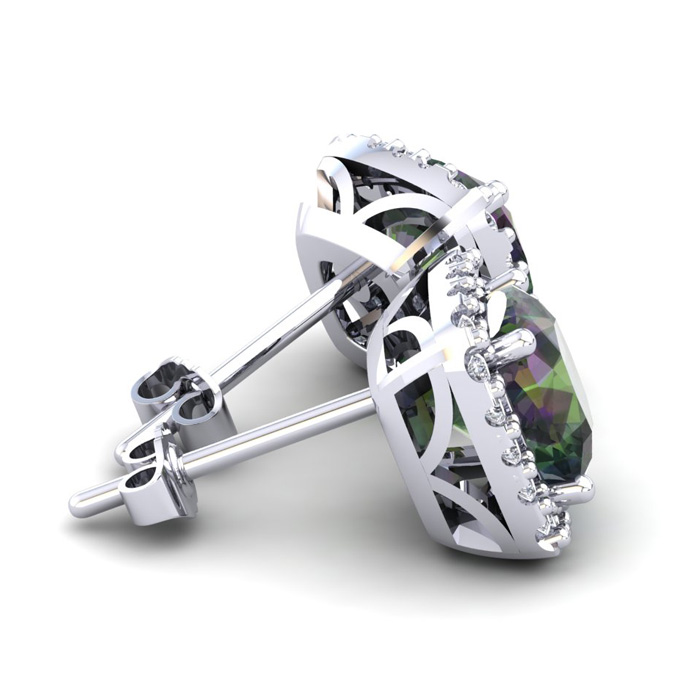 4 Carat Cushion Cut Mystic Topaz and Halo Diamond Stud Earrings In 14 Karat White Gold