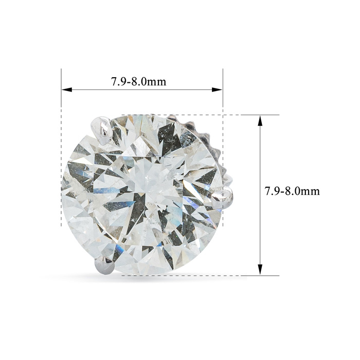 Behold! SuperJeweler's Finest and Most Important Genuine Natural Diamond Stud Earrings. Two natural diamonds of 2 carats each for an incredible 4 carats total weight. Large, fiery, beautiful diamonds that are perfect for the perfect woman. She deserves them, and you deserve her. Martini settings make the diamonds look oh-so-gorgeous. Diamond color is H-I and Diamond clarity is SI2. These diamonds are Clarity Enhanced. A treasure and a find.