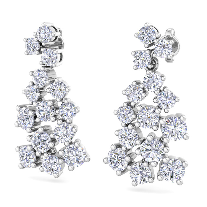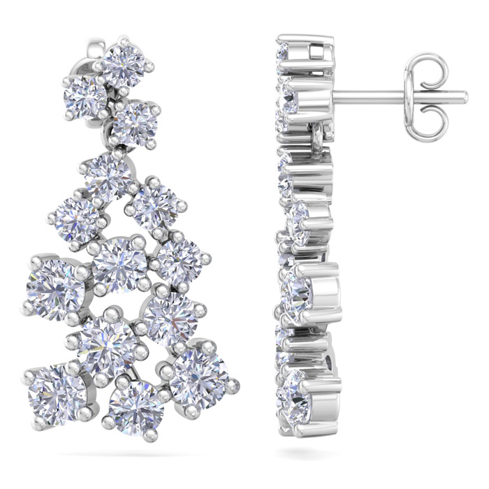 4 Carat Lab Grown Diamond Cluster Drop Earrings In 14 Karat White Gold