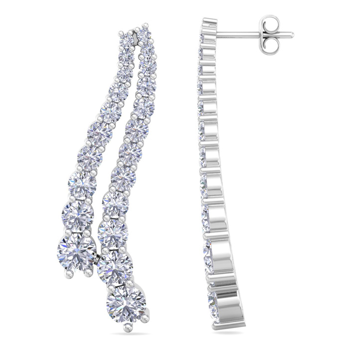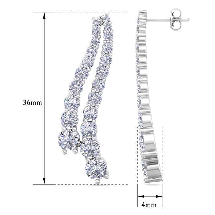 4 Carat Lab Grown Diamond Line Drop Earrings In 14 Karat White Gold, 1 1/2 Inches
