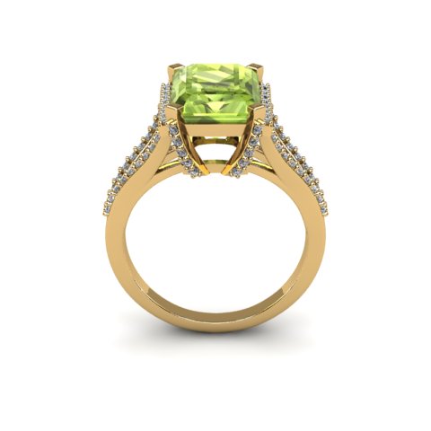 4 Carat Peridot and Halo Diamond Ring In 14 Karat Yellow Gold
