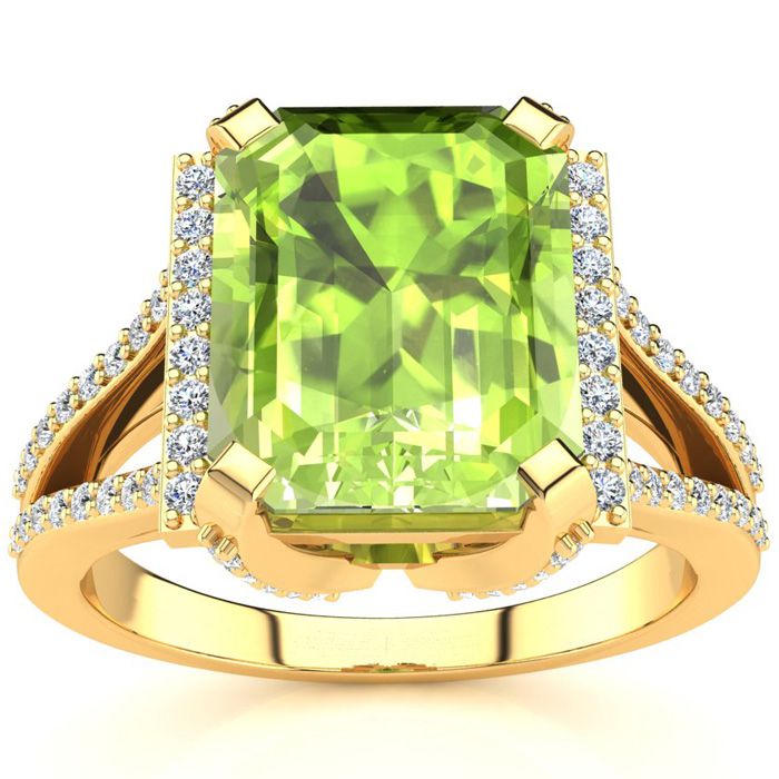 4 Carat Peridot and Halo Diamond Ring In 14 Karat Yellow Gold