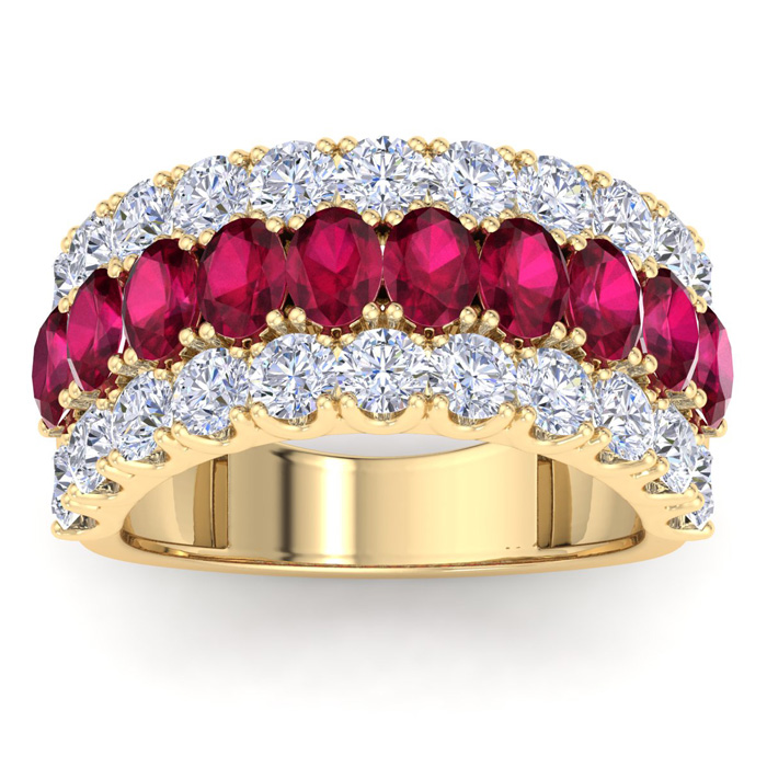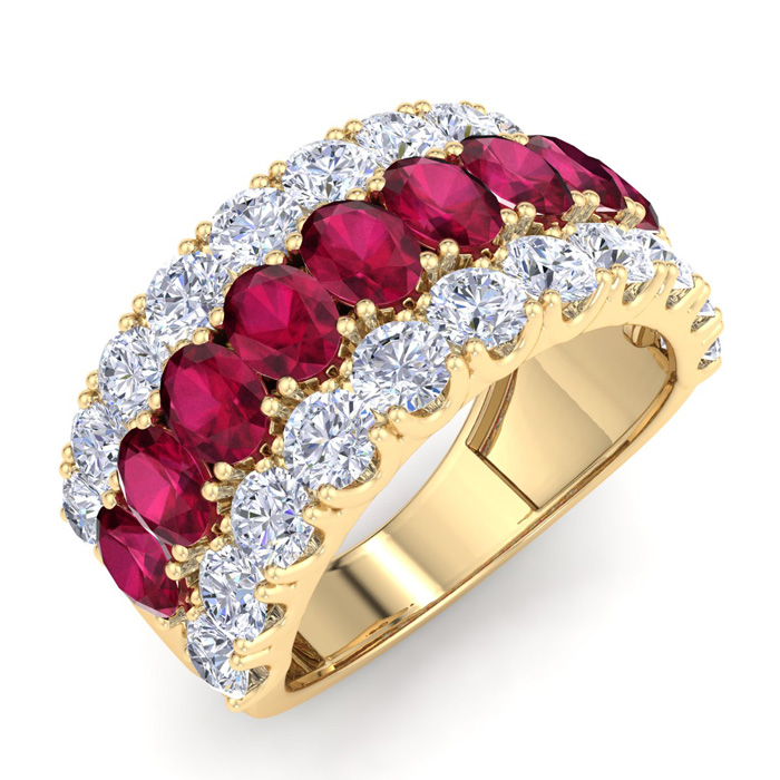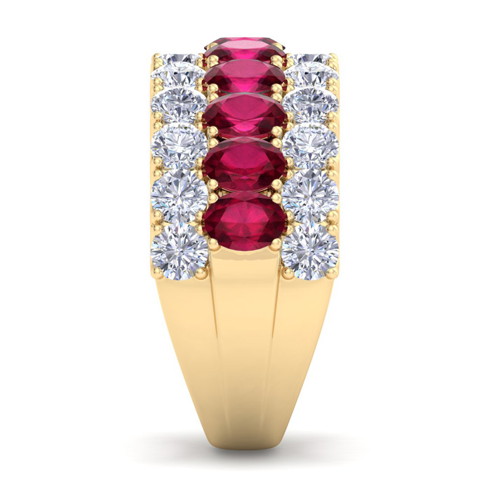 4 Carat Ruby and Lab Grown Diamond Band Ring In 14K Yellow Gold