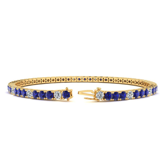 4 Carat Natural Sapphire And Diamond Alternating Mens Tennis Bracelet In 14 Karat Yellow Gold, 7 1/2 Inches