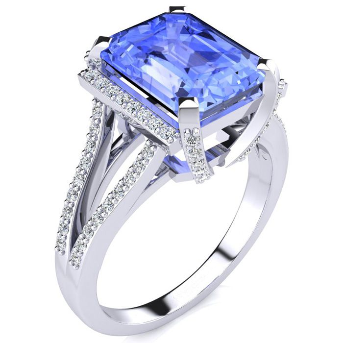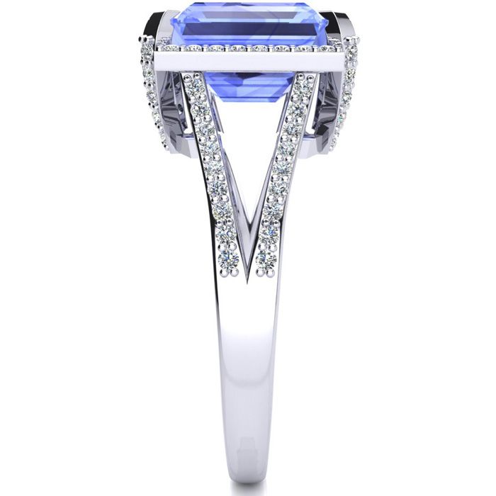 4 Carat Tanzanite and Halo Diamond Ring In 14 Karat White Gold