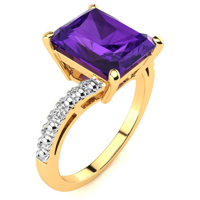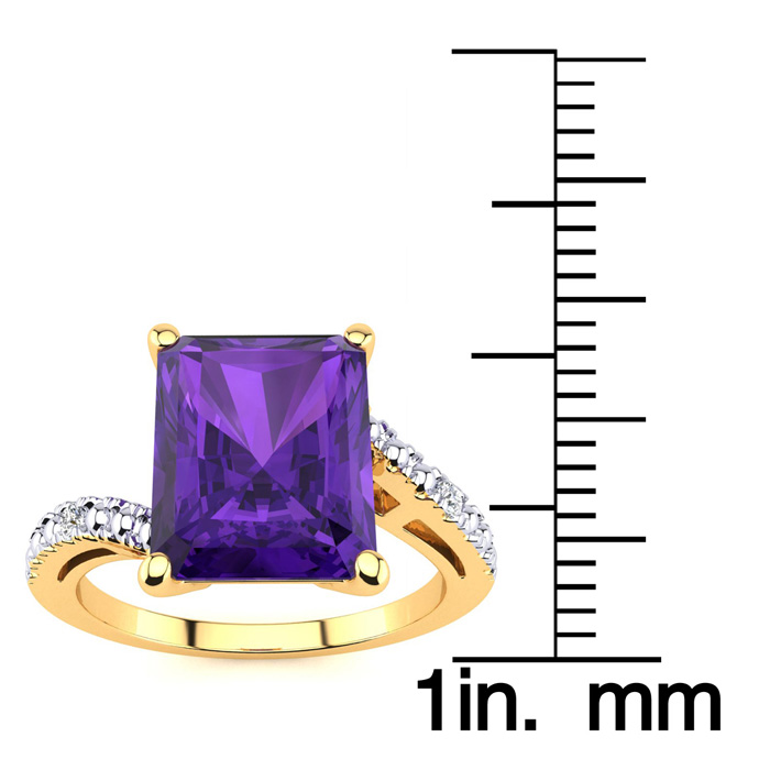 4ct Octagon Amethyst and Diamond Ring in 10k Yellow Gold
