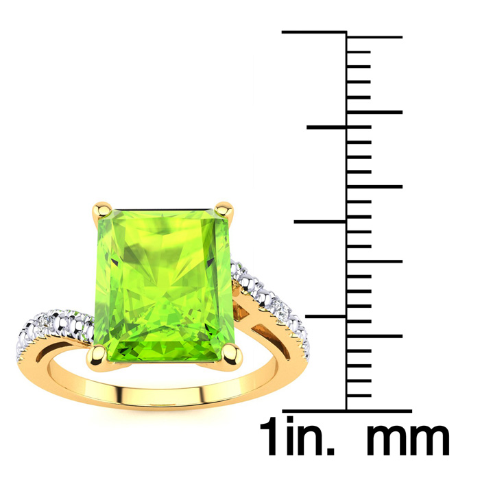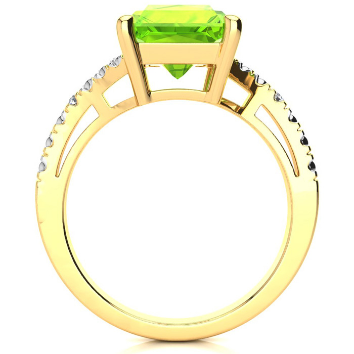 4ct Octagon Peridot and Diamond Ring in 10k Yellow Gold
