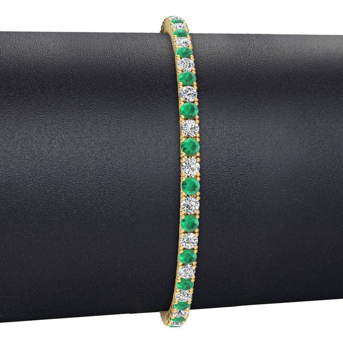 5 1/2 Carat Emerald And Diamond Tennis Bracelet In 14 Karat Yellow Gold, 9 Inches