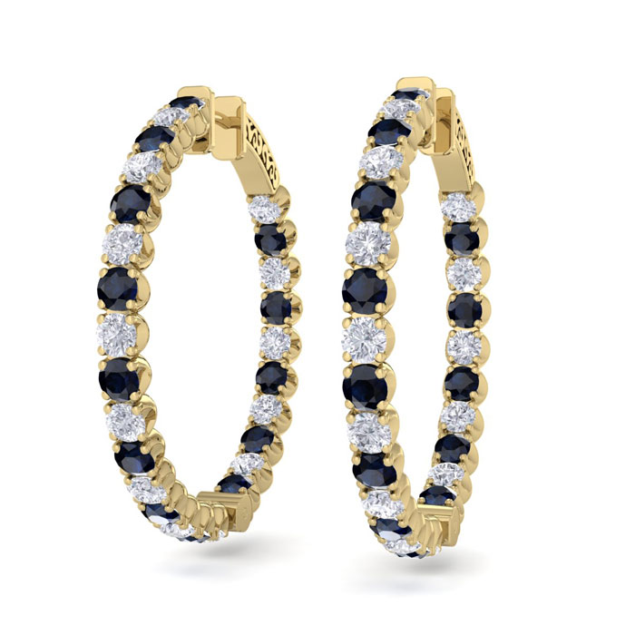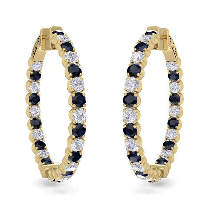 5 Carat Sapphire and Diamond Hoop Earrings In 14 Karat Yellow Gold, 1 1/2 Inches