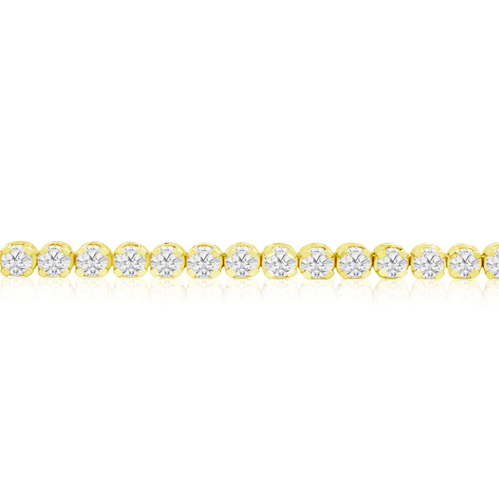 Beautiful new classic diamond mens tennis bracelet containing 5 3/4 carats of bright whitish diamonds, crafted in 14 karat yellow gold. SuperJeweler's diamond mens tennis bracelets are made with the finest mountings, made to last a lifetime, completed with shimmering bright diamonds. Diamond color is I/J, diamond clarity is I1/I2.