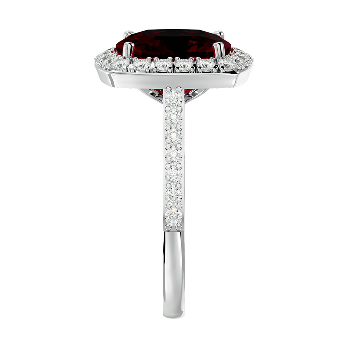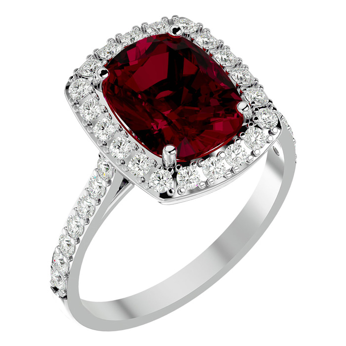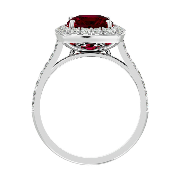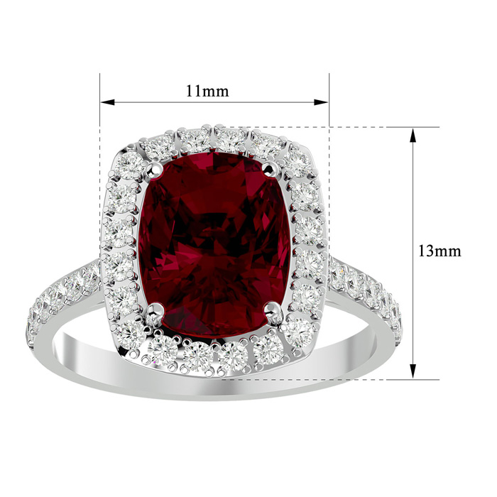 5 Carat Cushion Cut Ruby and Halo Diamond Ring In 18K White Gold