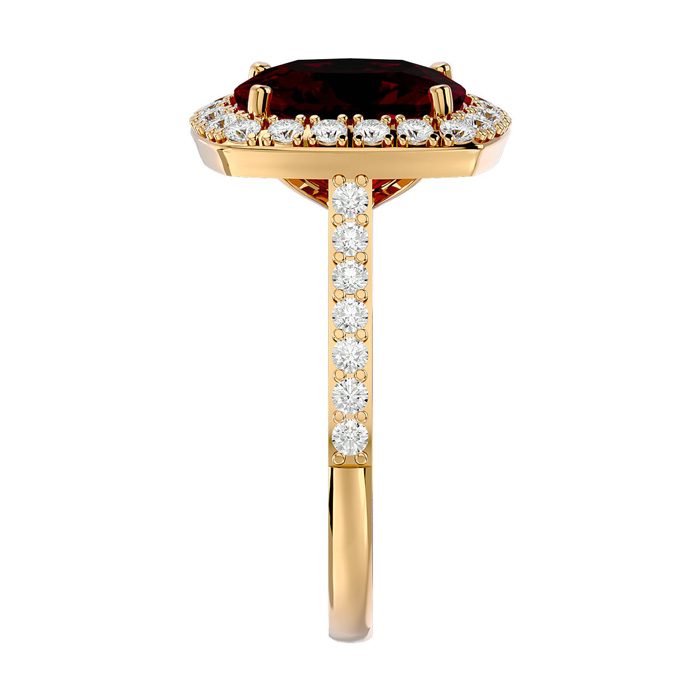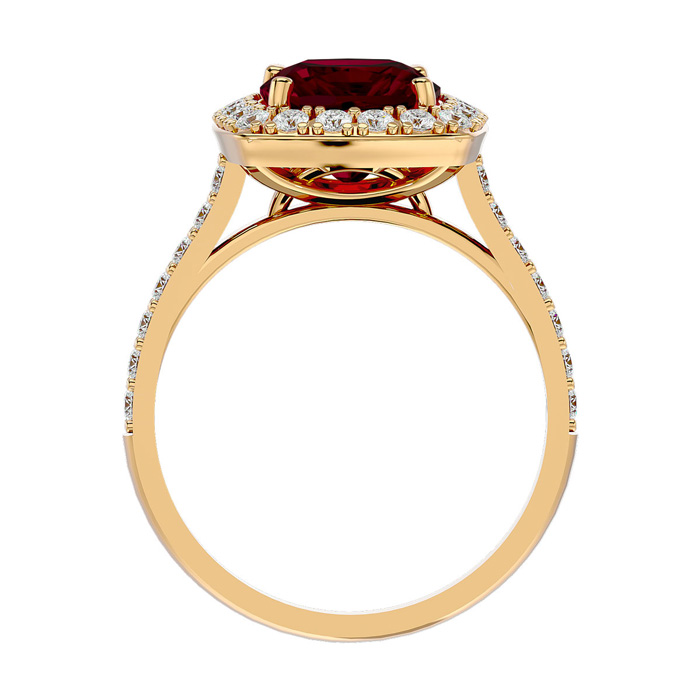 5 Carat Cushion Cut Ruby and Halo Diamond Ring In 18K Yellow Gold