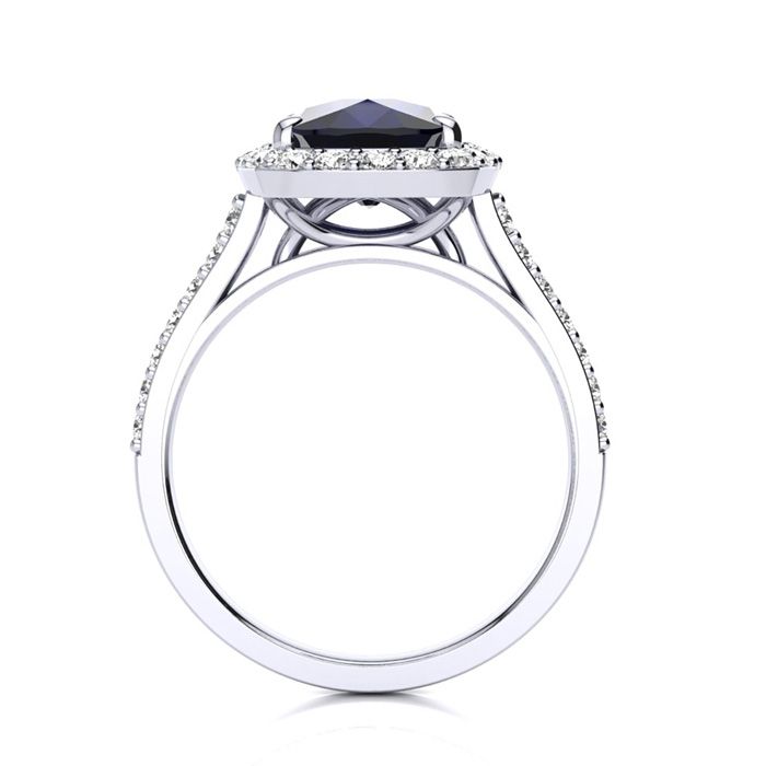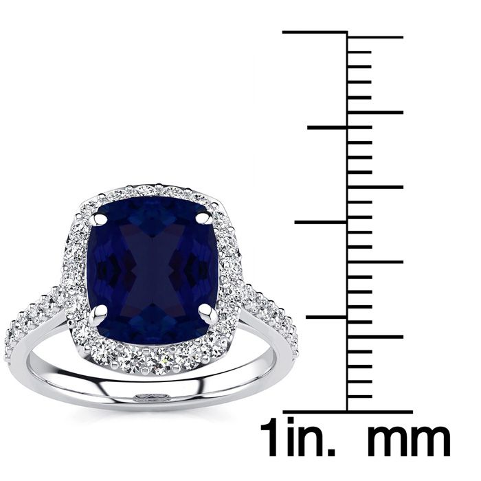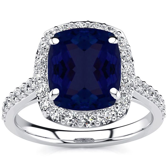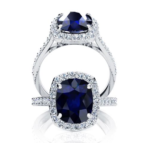 5 Carat Cushion Cut Sapphire and Halo Diamond Ring In 18K White Gold