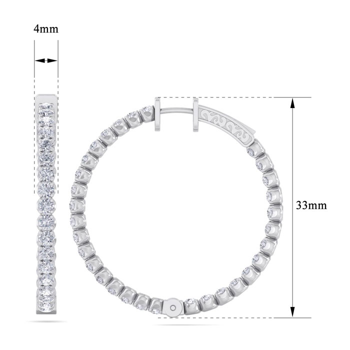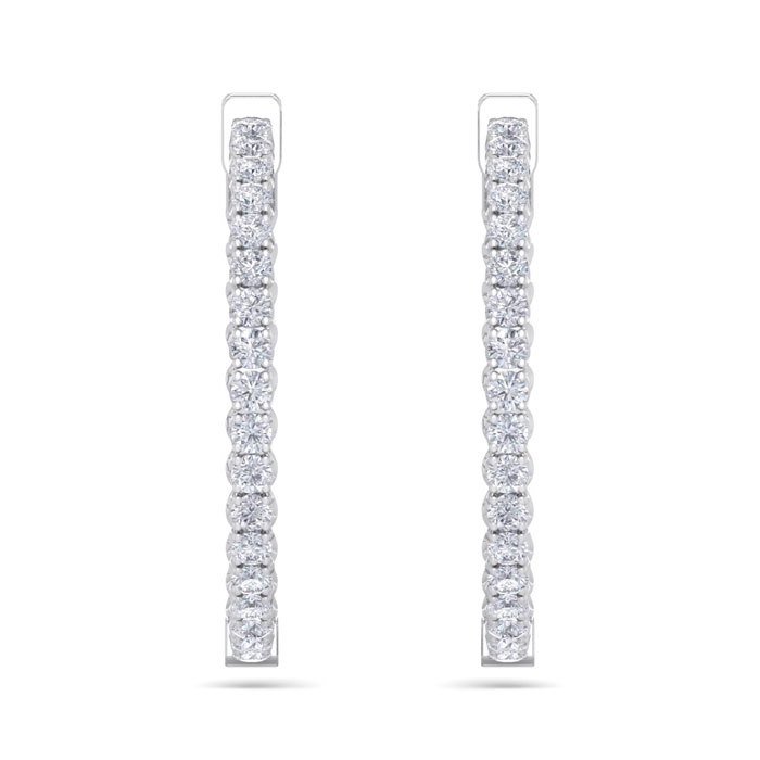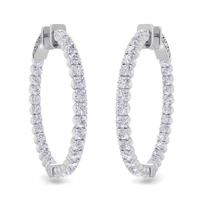 5 Carat Natural Diamond Hoop Earrings In 14 Karat White Gold, 1 1/4 Inch