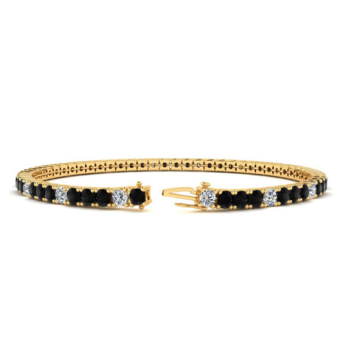 5 Carat Mens Black Diamond Tennis Bracelet, White Diamond, In 14 Karat Yellow Gold, 9 Inches