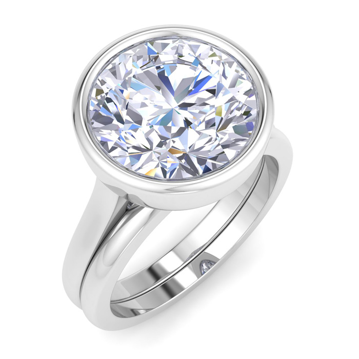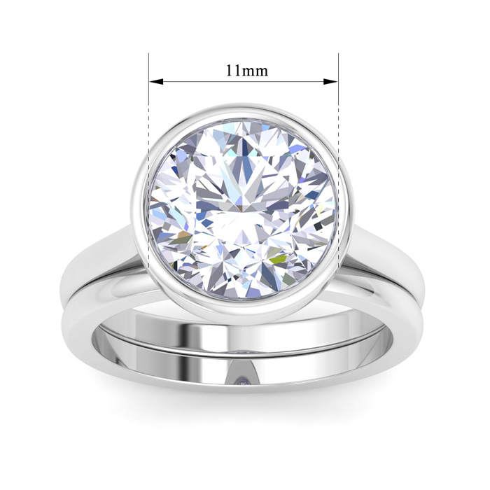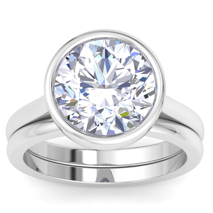 5 Carat Round Shape Lab Grown Diamond Ring With Matching Band In 14K White Gold, Solitaire Bezel Setting