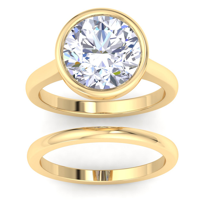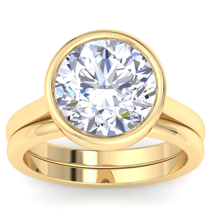 5 Carat Round Shape Lab Grown Diamond Ring With Matching Band In 14K Yellow Gold, Solitaire Bezel Setting