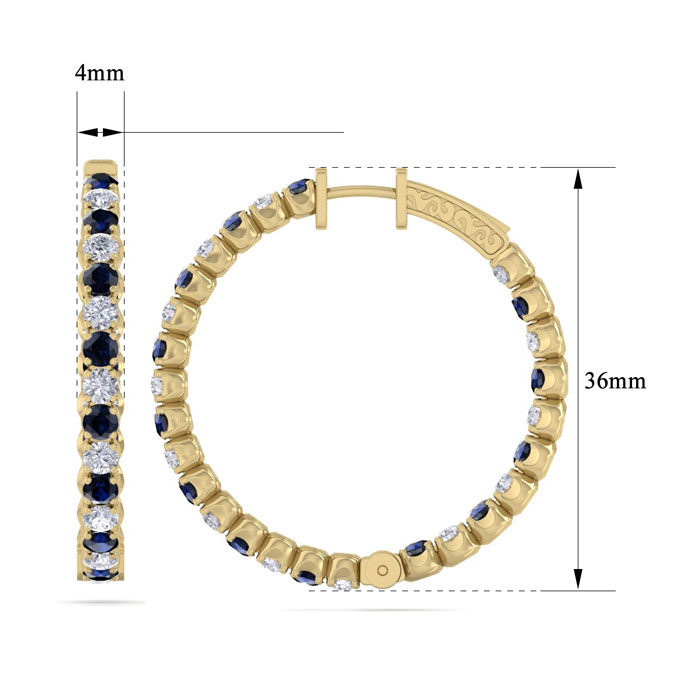 5 Carat Sapphire and Diamond Hoop Earrings In 14 Karat Yellow Gold, 1 1/2 Inches