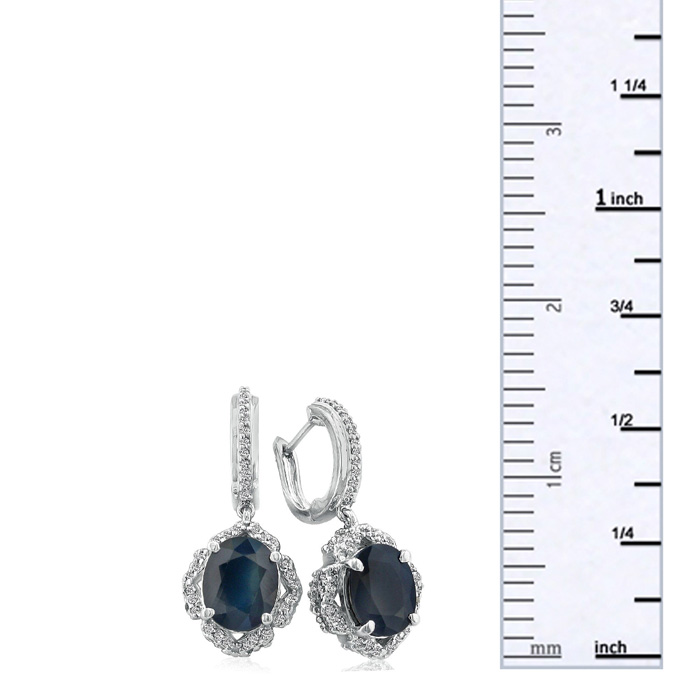 Beautiful for a fancy party or for a trip to the grocery, you will look your elegant best in these beautiful Sapphire and Diamond Earrings. 5.70 carats of deep blue sapphires, .62 carats of our nice SuperJeweler diamonds, 14 karat white gold. The micropave diamond accents literally cover these gorgeous sapphire earrings.