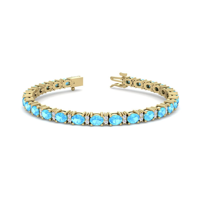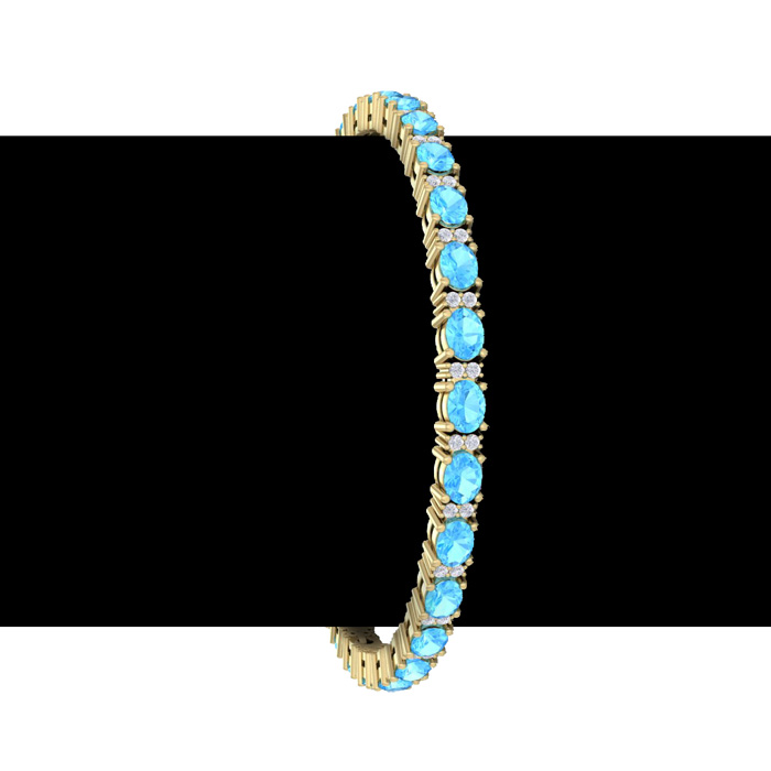 6 Carat Oval Shape Blue Topaz and Diamond Bracelet In 14 Karat Yellow Gold, 7 Inches