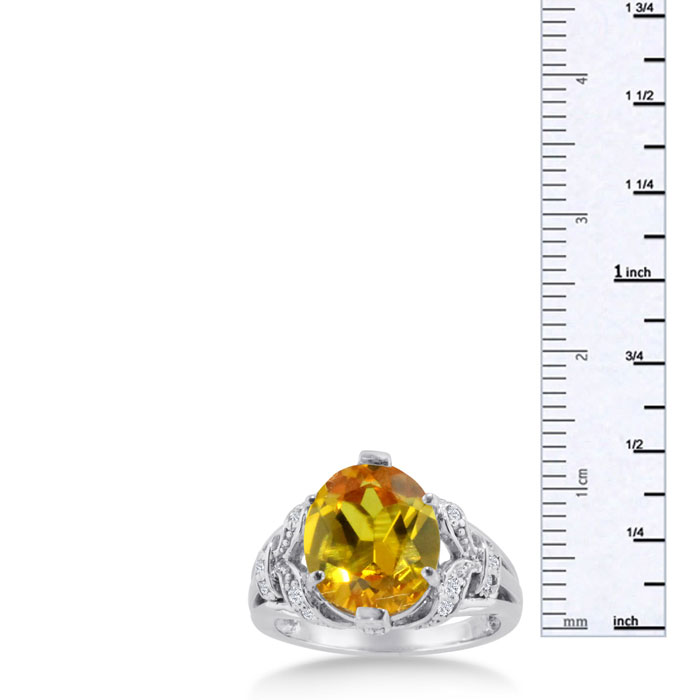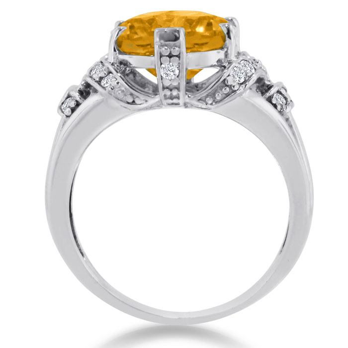 I love the band this oval citrine diamond ring comes with; it is so elegant and antique looking. The diamonds on the side sparkle and look so nice against the bright yellow stone. This large gem stone jewelry is very trendy right now; get this fabulous ring now while they last.