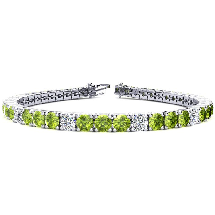 7 3/4 Carat Peridot and Diamond Alternating Tennis Bracelet In 14 Karat White Gold, 6 Inches