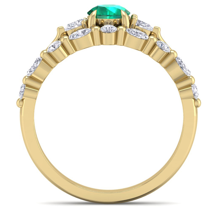 7/8 Carat Emerald and Diamond Antique Style Bridal Set In 14 Karat Yellow Gold