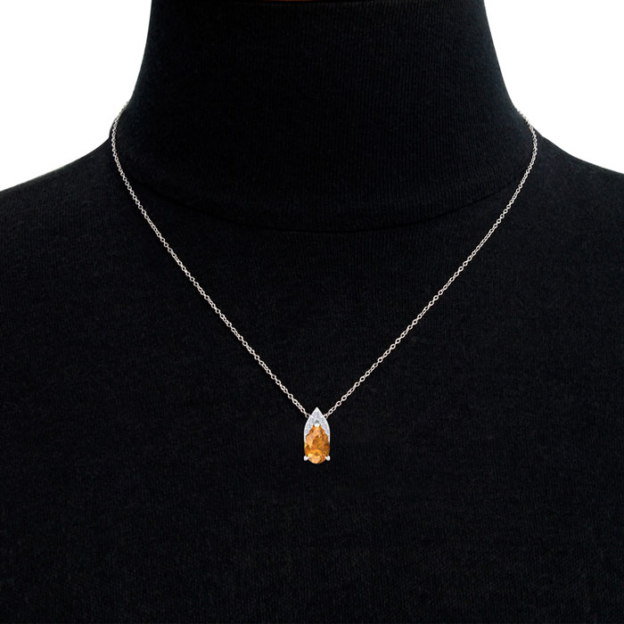 7/8 Carat Pear Shape Citrine and Diamond Necklace In 14 Karat White Gold, 18 Inches