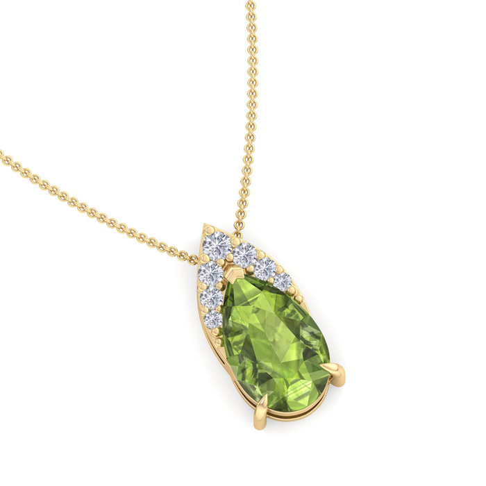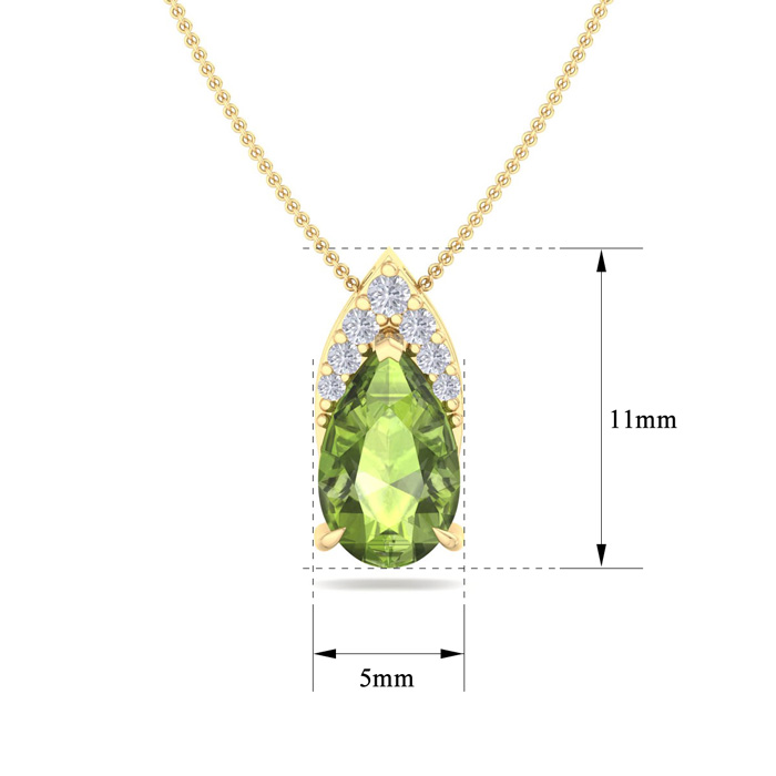 7/8 Carat Pear Shape Peridot and Diamond Necklace In 14 Karat Yellow Gold, 18 Inches